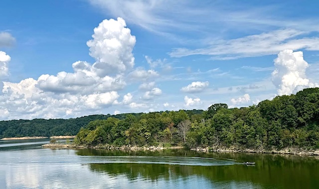 2025-08-22 - Taylor County, KY - Photo by Linda Waggener, ColumbiaMagazine.com. Boating and fishing on Green River Lake ramp up as we enter the Labor Day holiday season. Checking the stats, Wikipedia tells us, "Green River Lake is a 8,210-acre reservoir in Adair, Taylor, and Casey counties lying in the section of Kentucky known as the Highland Rim. The lake was developed by the United States Army Corps of Engineers in 1969 by impounding the Green River."