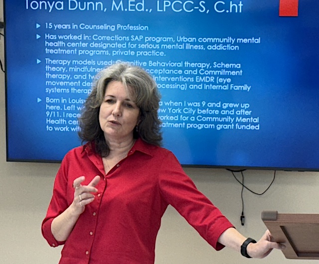 2025-10-01 - Columbia, KY - Photo by Linda Waggener, ColumbiaMagazine.com. Tonya Dunn was the speaker at TJ Health Columbia's recent Lunch & Learn event. Sharing her 15 years in the Counseling Profession, her topic was communication and ways to improve for the best emotional health. She said to remember that learning to be assertive takes time and practice. Check the article linked to this picture and see if you can find your communication style and that of your family and friends.