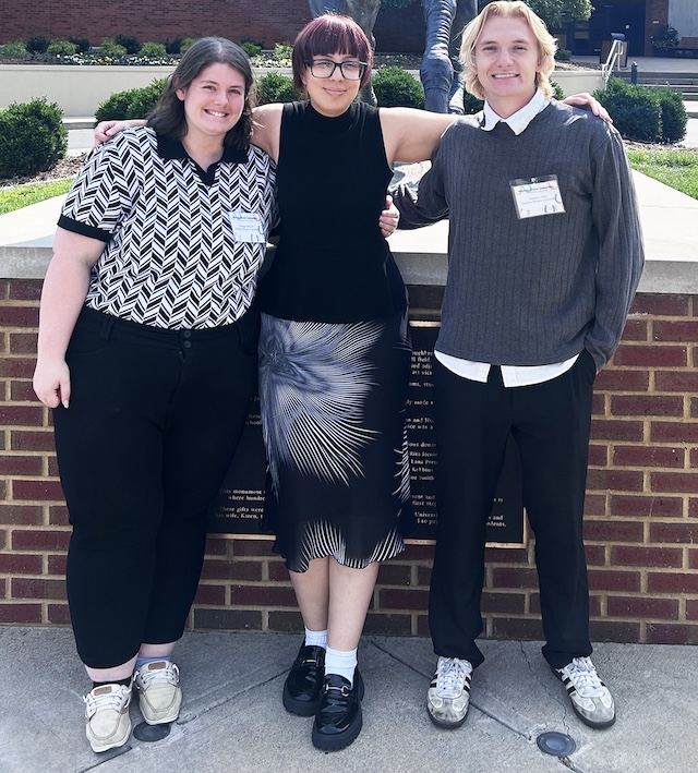 2025-10-02 - Murray, KY - Photo courtesy Lindsey Wilson University. Lindsey Wilson University honors students, from left, Morgan Bryant '26 of Shelbyville, Kentucky, Emma Couch '27 of London, Kentucky, and Zachary Hite '27 of Hodgenville, Kentucky, presented research at the fall meeting of the Kentucky Honors Roundtable Conference, which was held September 20, 2025, at Murray State University.