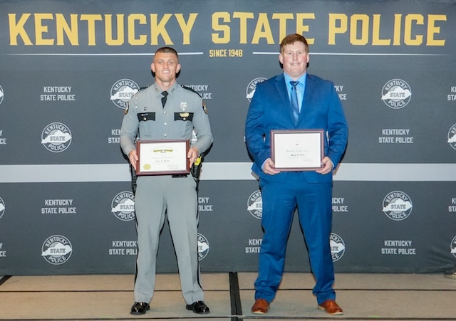 Trooper Trey Binder and Detective James Ford from Kentucky State Police Post 15 in Columbia were honored at the 2025 Sworn Awards Ceremony on September 26, 2025.