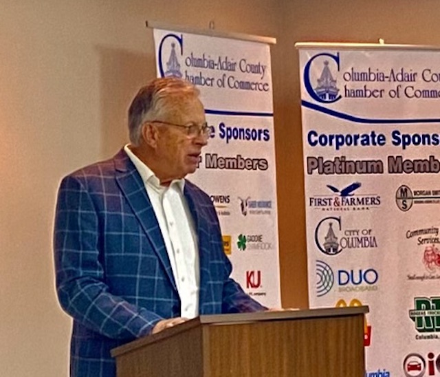 Adair County Judge Executive Larry Russell Bryant was the first speaker of 2024 to address members of the Columbia Adair Chamber of Commerce at Tuesday's lunch meeting. He took the high road, focusing on the good things working in 2023, especially the economic development progress toward future jobs in the Green River Commerce Park. The EDA announced that a second grant has now been confirmed to prepare sites in the industrial park.