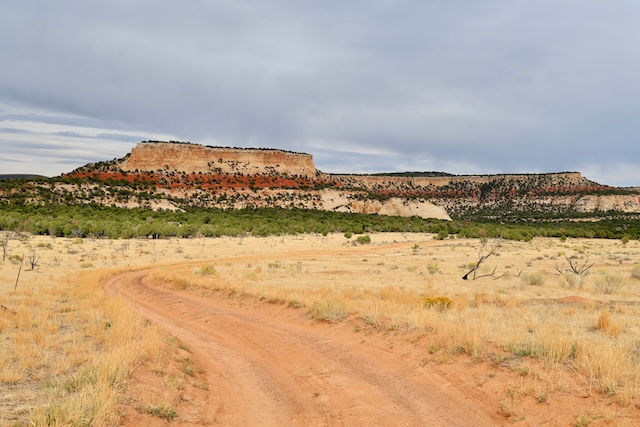 This scene is at the start of the drive. The road takes you around and over the Mesa. The road itself is blacktop all the way. I stopped the car to get out and take a pic of this nearby, old winding dirt road."
