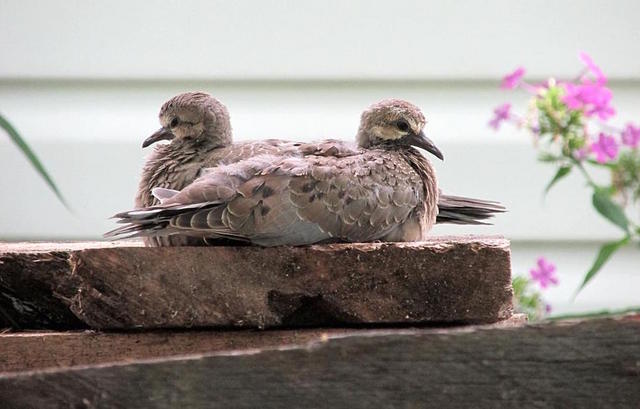 2016-07-18 - Cane Valley, Adair County, KY - Photo by Robert Ellis. The beautiful pair of young doves first on CM on July 13, 2016, are still hanging out at Robert Ellis' shop in Cane Valley, posing, as they wish, for delightful photos like this one. - CM. Paired photos for today's young dove photos. See: Birds of KY - Doves & Tiger Lilies at Robert Ellis shop - II