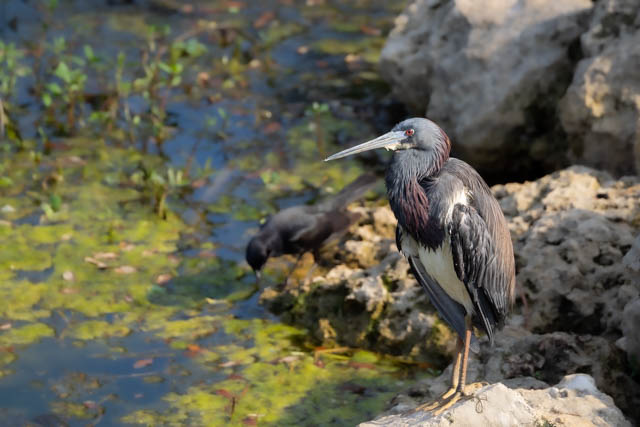 All About Birds says about the tricolored heron, "This fairly small heron wades through coastal waters in search of small fish... Angsty teenagers aren't just a human phenomenon. As Tricolored Herons get older they often lunge and snap at their parents when they arrive at the nest with food. To appease the youngsters, parents greet them with bows."
