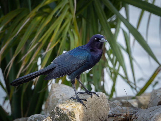 According to the All About Birds entry for the Boat-tailed Grackle, "Along the western Gulf Coast, Boat-tailed Grackles have dull, brownish eyes. Along the Atlantic Coast and the Gulf Coast west to Mississippi, Boat-tailed Grackles have bright yellow eyes."