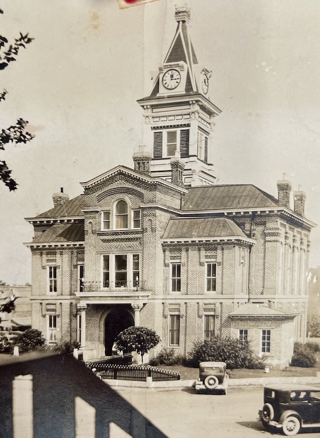 This picture of the historic Adair Co. Courthouse, from an undated postcard, shows a small addition (early wing?) at the front right corner.