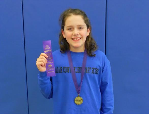 Young ACES A-team has big wins in District Governor's Cup Future Problem Solving Team takes 1st - going to Regionals! 2014 District Governor's Cup Competitors, The ACES A-Team: Colin Stephens, Alexis Burton, Malory Hiser, Aiden Bosela, Noah Newell, Halle Burton, Kennedy Stephens, Kiara Collins, Chloe Stapleton, Holly Absher, Amber Loy, Emily Bivens, Sadie Kemp, Morgan Spoon, Jaylyn Burton, Reilly Wells, Anna Evans, Elizabeth Cook, Trinity Carta, Clay Giles, Leslie Streeval, Gracie Baker, and Chloe Taylor Click on headline for complete story with photo(s) By Shamarie Claibore, Media Publicity Coordinator News from the Adair County School District On Saturday March 1, 2014 at the Metcalfe County Elementary School the Adair County Elementary School Academic Team competed in the District Governors Cup. The young team did very well with wins in numerous written assessment areas. Aiden Bosela placed 2nd in Science, Amber Loy placed 4th in Language Arts, Morgan Spoon placed 3rd and Sadie Kemp 5th in Arts & Humanities. Their Quick Recall team placed 3rd. Article continues... click title or click here to read whole article. 2014-03-07 13:59:32 | Comments | Printable version | See topic Education