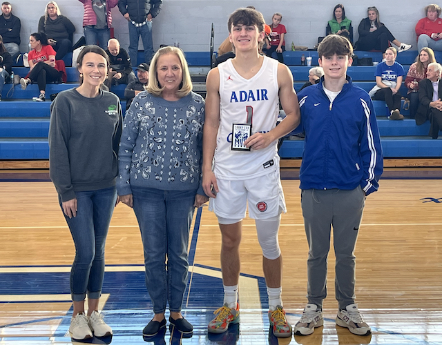 Indians defeat Bullitt East 77-50 By Trey Stephens, Staff Writer Saturday, in the first game of the Corky Cox Classic in LaRue County, the Indians of Adair County defeated Bullitt East 77-50. The Indians once again rocketed out ahead early on with a 14-0 run to open the game, ultimately they would lead by 15 at the half. The team was led in scoring by Dawson Gilbert who was named Most Outstanding Player in the game with 29 points including 9 made threes and 3 rebounds. The team as a whole shot 49% from the floor and 54% from three. Isaiah Cochran added the team's second most points with 15, plus the most rebounds with 6. The team returns to action Friday when they travel to Campbellsville for their second district game of the young season. 2024-12-10 21:48:17 | Comments | Printable version | See topic Sports